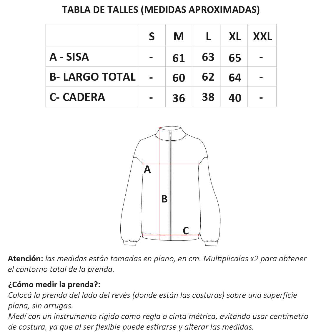 Disponible en talles M, L y XL (talles reales).